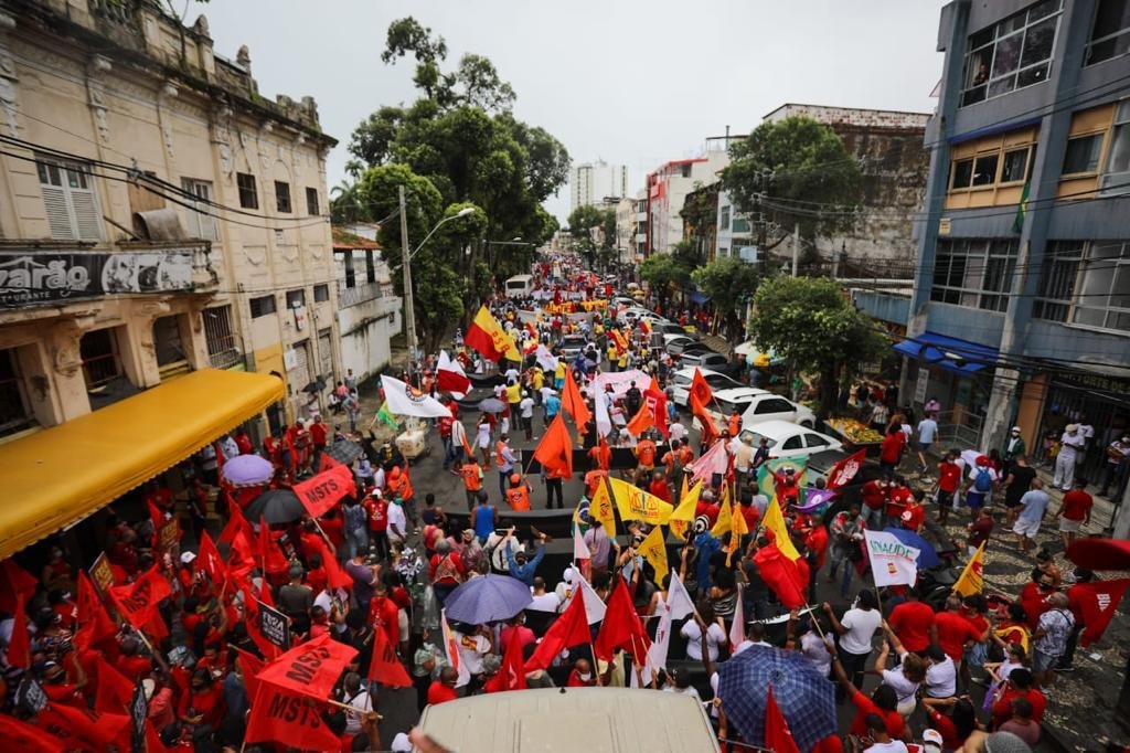 Nas imagens da manifestação, foi possível identificar diversas bandeiras partidárias ligadas a movimentos de trabalhadores, como a Central Única dos Trabalhadores (CUT), além de sindicatos, movimentos estudantis e partidos como PT, PSOL, PCdoB e PSB.