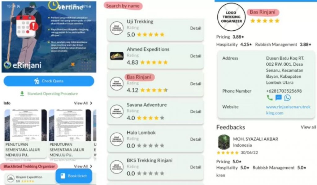 Uma lista disponível no aplicativo oficial do parque indicava que a agência Bas Rinjani estava incluída em uma espécie de "lista bloqueados" e não tinha autorização para atuar no local. Um organizador de turismo do parque, que preferiu não se identificar, confirmou que a empresa está impedida de operar.