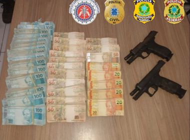 Cerca de R$ 236 mil e duas pistolas foram encontrados com os suspeitos. O material foi levado ao Departamento de Repressão e Combate ao Crime Organizado (Dracco) de Vitória da Conquista e farão parte das investigações.