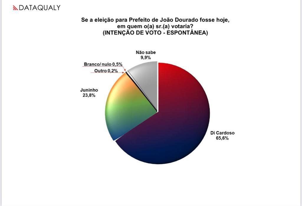 O candidato a prefeito de João Dourado pelo PL, Di Cardoso, lidera em todos os cenários da pesquisa de intenção de voto realizada pelo instituto Dataqualy entre 16 e 19 de outubro.