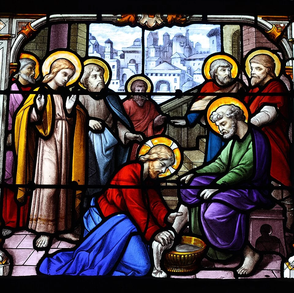 Lava-pés. Vitral na Igreja de Saint-Aignan em Chartres, na França (Foto: Reinhardhauke/ Wikimedia)