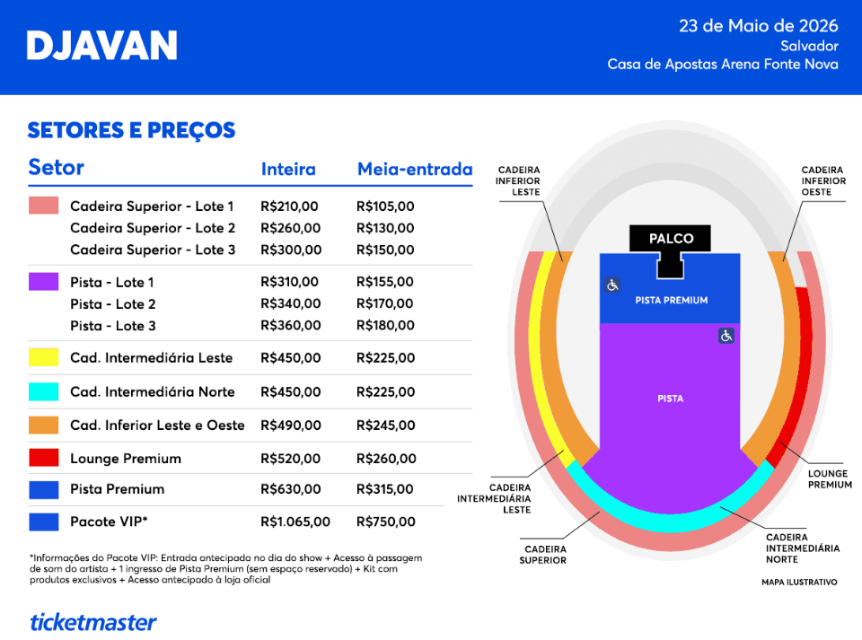 Na capital baiana, o show, que foi confirmado em novembro, teve o local revelado no último domingo (30), e acontecerá na Casa de Apostas Arena Fonte Nova, no dia 23 de maio de 2026.